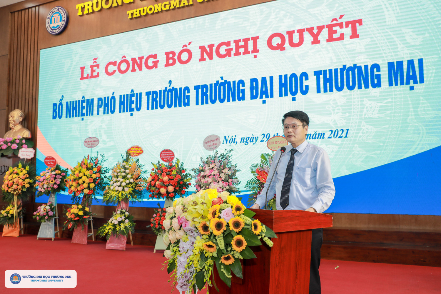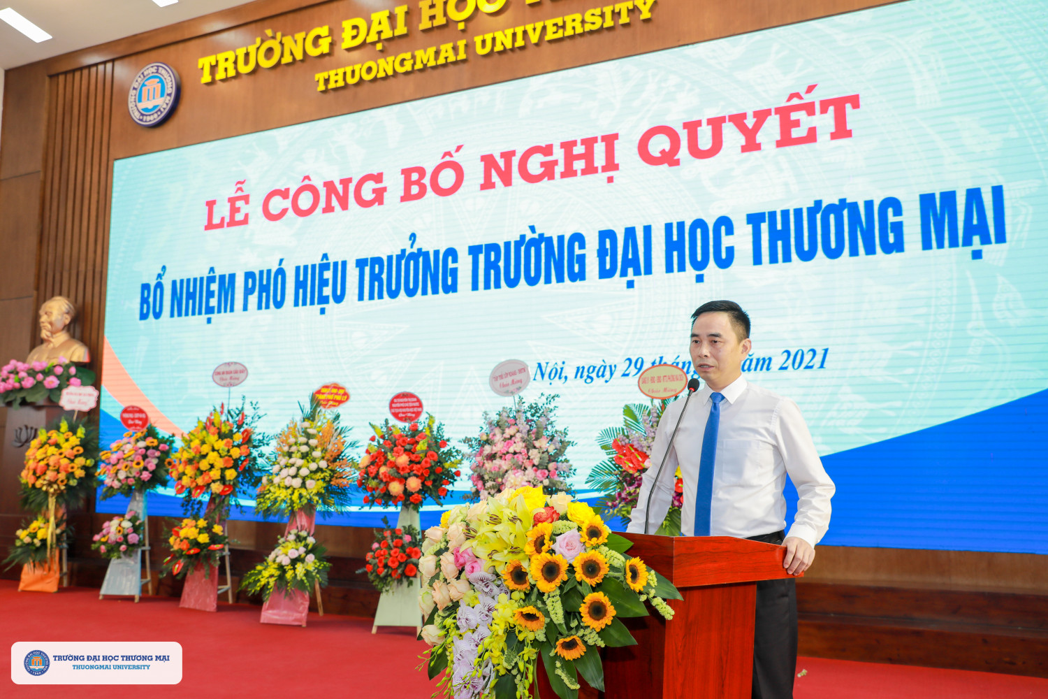 14h00 ngày 29/3/2021, tại Hội trường H1, Trường Đại học Thương mại đã long trọng tổ chức Lễ công bố Nghị quyết của Hội đồng trường bổ nhiệm Phó Hiệu trưởng Trường Đại học Thương mại.
