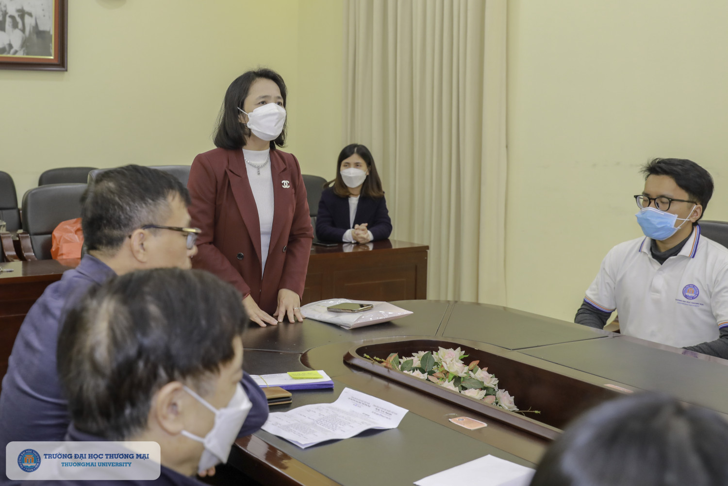 Phát biểu tại buổi trao tặng, PGS,TS. Nguyễn Thị Bích Loan – Phó Hiệu trưởng Nhà trường chia sẻ, mỗi dịp Tết đến xuân về, công tác trao quà tặng cho viên chức có hoàn cảnh khó khăn là một việc làm không thể thiếu trong hoạt động công đoàn của Trường Đại học Thương mại. Những món quà của Công đoàn Trường thể hiện tấm lòng mong muốn chung tay, động viên chia sẻ để viên chức Nhà trường có một cái Tết ấm áp sum vầy bên gia đình người thân. Bên cạnh đó, PGS,TS. Nguyễn Thị Bích Loan cũng biểu dương những thành tích mà Công đoàn Trường Đại học Thương mại đã thực hiện được, đặc biệt là những hoạt động thiết thực chăm lo đời sống viên chức nhân dịp Tết.